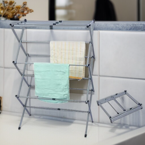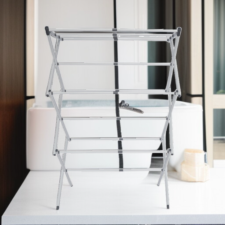 ราวตากผ้าพับได้แบบตั้งพื้น X-Shape สำหรับระเบียงและห้องน้ำ พร้อมชั้นวางหลายชั้น